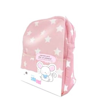 Mochila rosa con 5 productos de Sebamed en su interior: